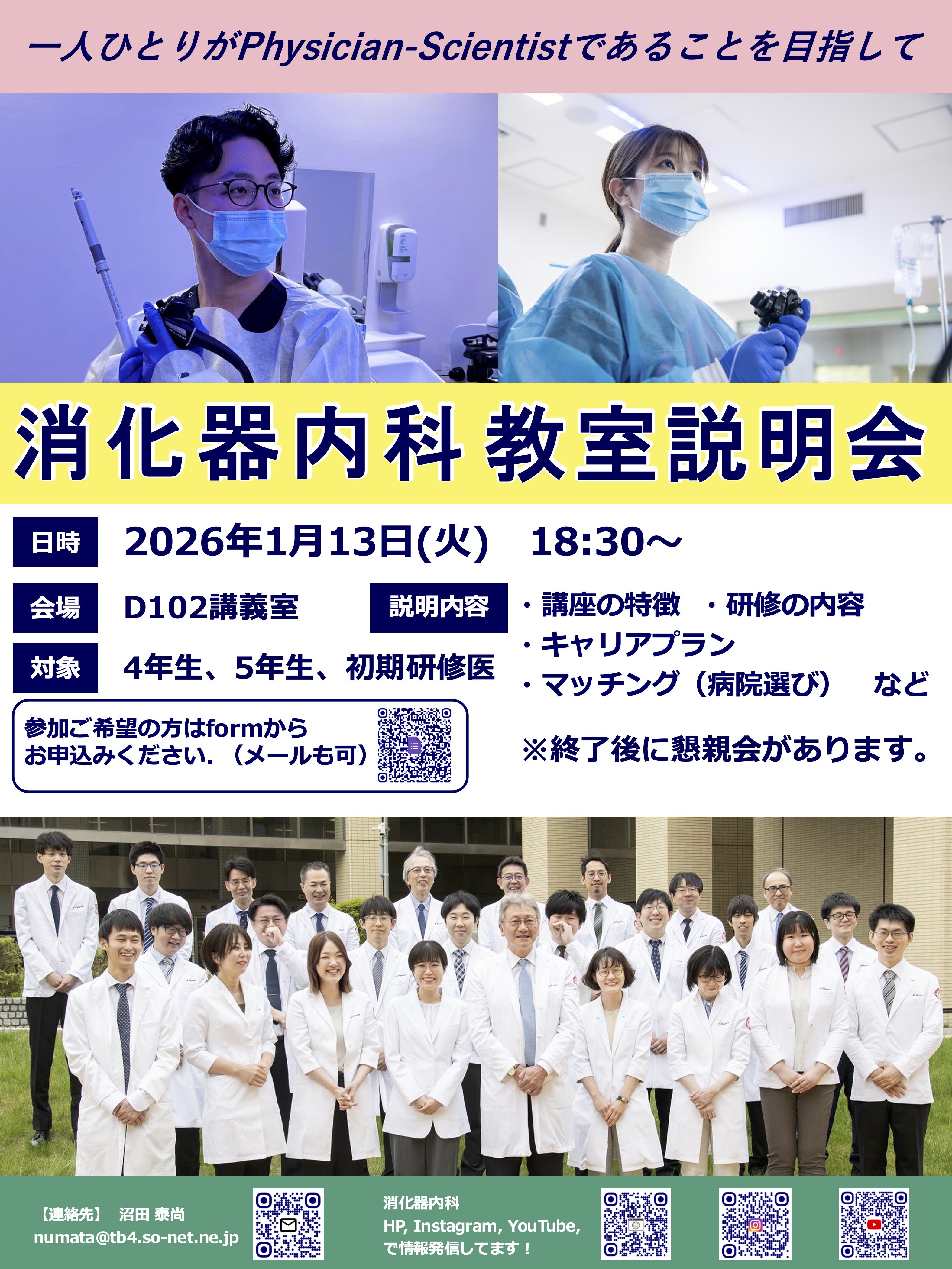 内科学講座 消化器内科学分野の教室説明会、2026年冬を開催します!